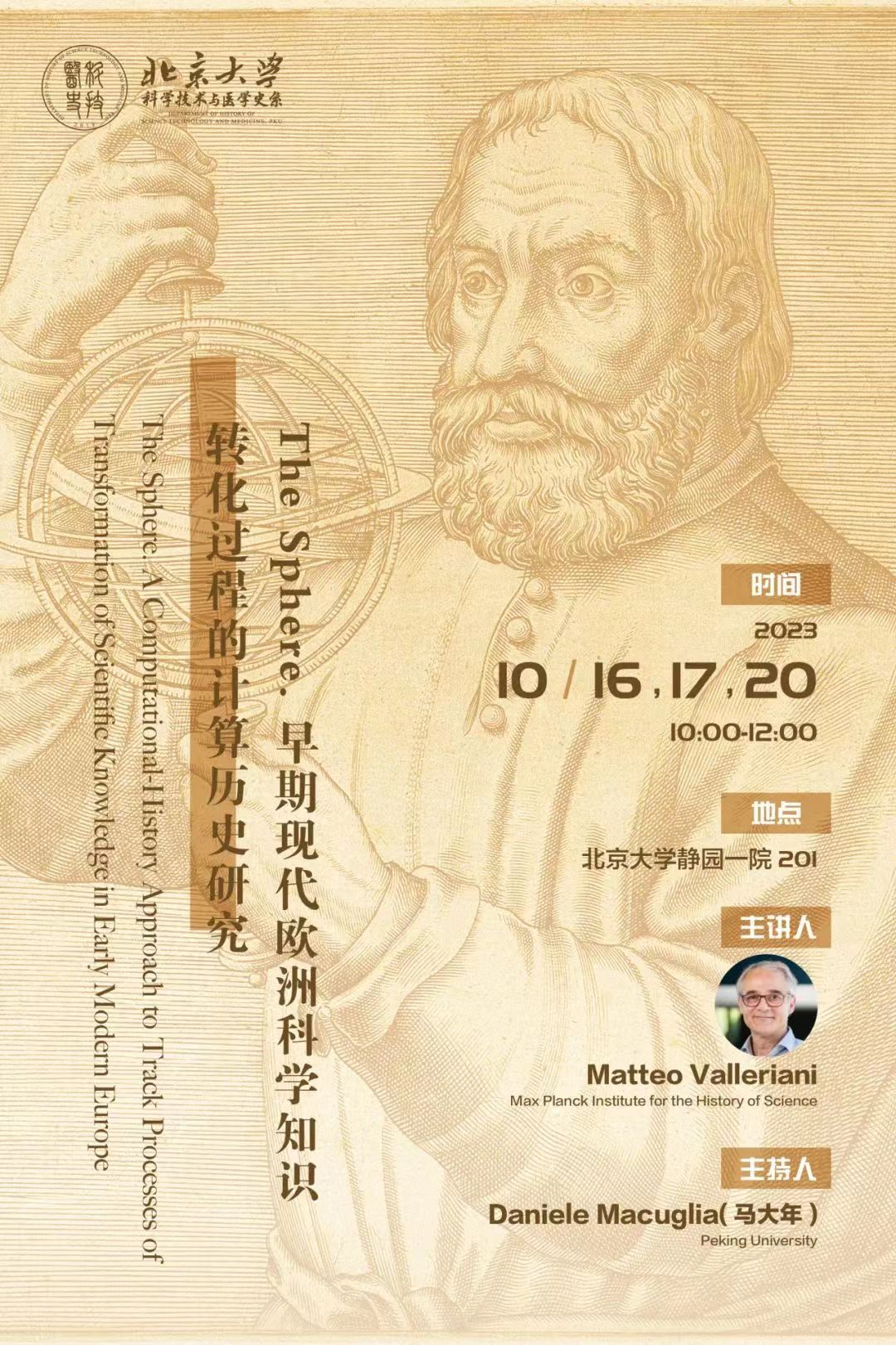 主讲人介绍:Matteo Valleriani currently holds a position at the Max Planck Institute for the History of Science in Berlin, where he leads a research group in the institute's first department. Additionally, he serves as an honorary professor at the Technical University of Berlin and a visiting professor at Tel Aviv University. His research delves into the interconnections between the dissemination of scientific, practical, and technical knowledge and their social, economic, and political contexts. His study periods primarily cover the Hellenistic period, late Middle Ages, and early modern era. Valleriani is currently leading a project titled "The Sphere: Knowledge System Evolution and the Shared Scientific Identity of Europe," examining the development and formation of a unified scientific identity in European cosmological knowledge from the 13th to the 17th century. Another focal point of his research involves knowledge transmission through visual media. Furthermore, within the realm of digital humanities, Valleriani is dedicated to applying complex systems theory, machine learning, and artificial intelligence methods to historical analysis.