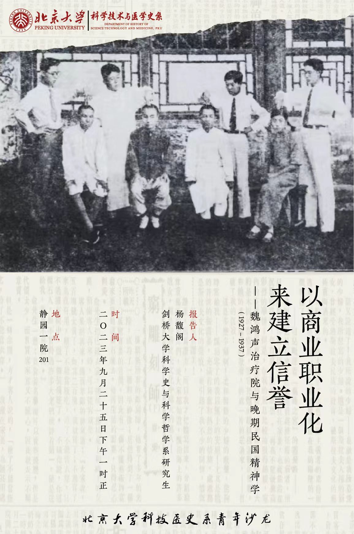 题目:以商业职业化来建立信誉:魏鸿声治疗院与晚期民国精神学(1927 – 1937)