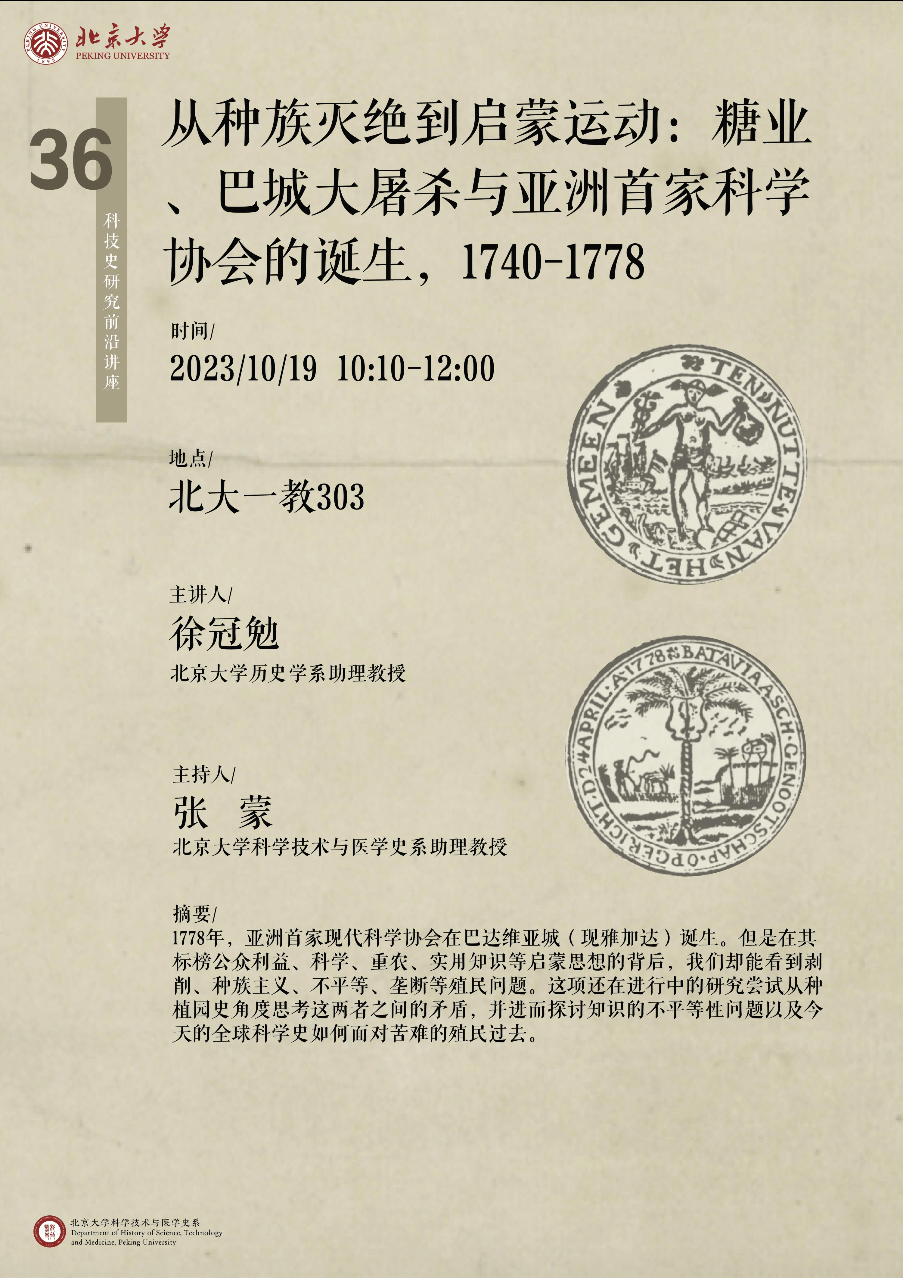 简 历:徐冠勉,北京大学历史学系助理教授。主要研究领域为殖民史、全球史与物质文化史。研究成果发表于Journal of World History (2022)、International Review of Social History (2022)、Itinerario (2020)、《清华大学学报(哲学社会科学)》(2020)、《历史人类学学刊》(2019)等同行评议期刊。