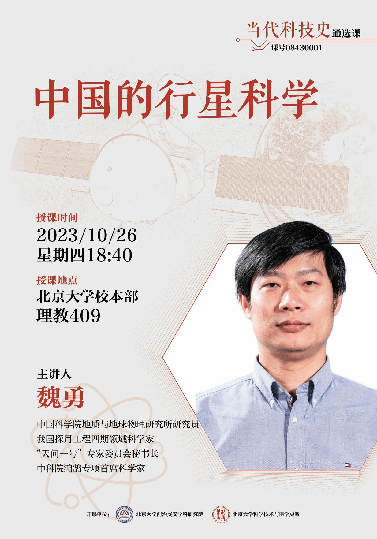 魏勇,中国科学院地质与地球物理研究所研究员、副所长,中国科学院大学地球与行星科学学院教授、副院长,中科院地球与行星物理重点实验室主任。中国科学院A类先导鸿鹄专项首席科学家、天问一号科学研究专家委员会委员兼秘书长、中国探月工程四期领域科学家、中国高校行星科学联盟秘书长。长期从事行星物理学研究和科学技术史研究,发表学术论文280余篇,出版学术专著3部;从事行星科学学科建设理论研究,发表论文20余篇。曾获中国青年科技奖、科学探索奖、AOGS Distinguished Lecture Award、首次火星探测任务先进个人等奖项。