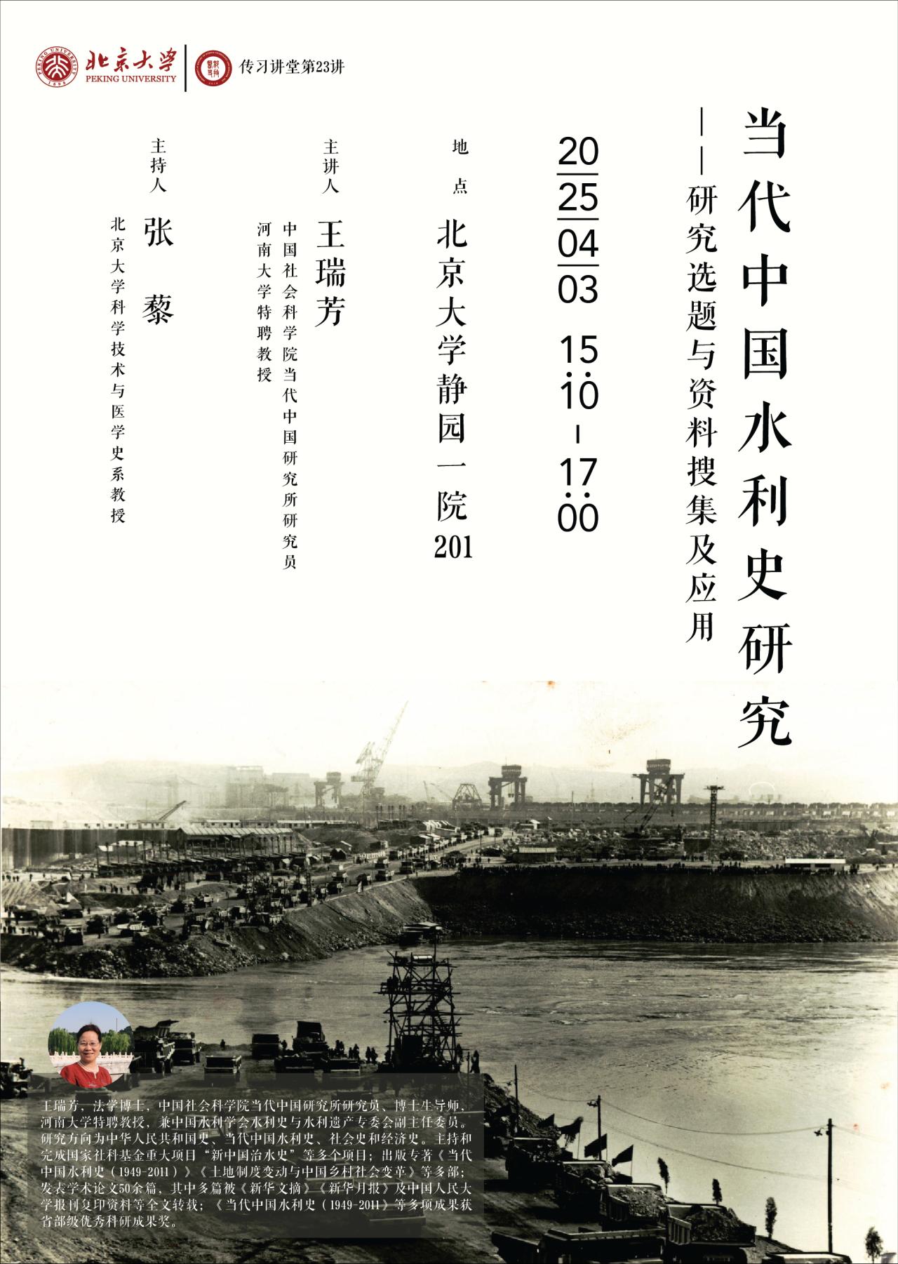 人类文明起源于河流,水与人类文明的兴衰息息相关。为此,历史上有作为的统治者意识到治水与治国的关系,都高度重视水利建设,可以说是善治国者必先治水。新中国成立后,国家更加重视水利建设,历届主要领导人认识到治水与治国的关系,投入大量的人力和财力,随着科技的发展,兴修了许多大型水利工程,为国家的经济建设和社会发展做出了重大贡献。对此,需要历史研究者认真研究,总结其中的经验和教训,这是讲座人从事新中国水利史研究的初衷。如何进行总结和研究,需要从搜集各类资料入手,然后消化、分析和应用,最后产生出研究成果。