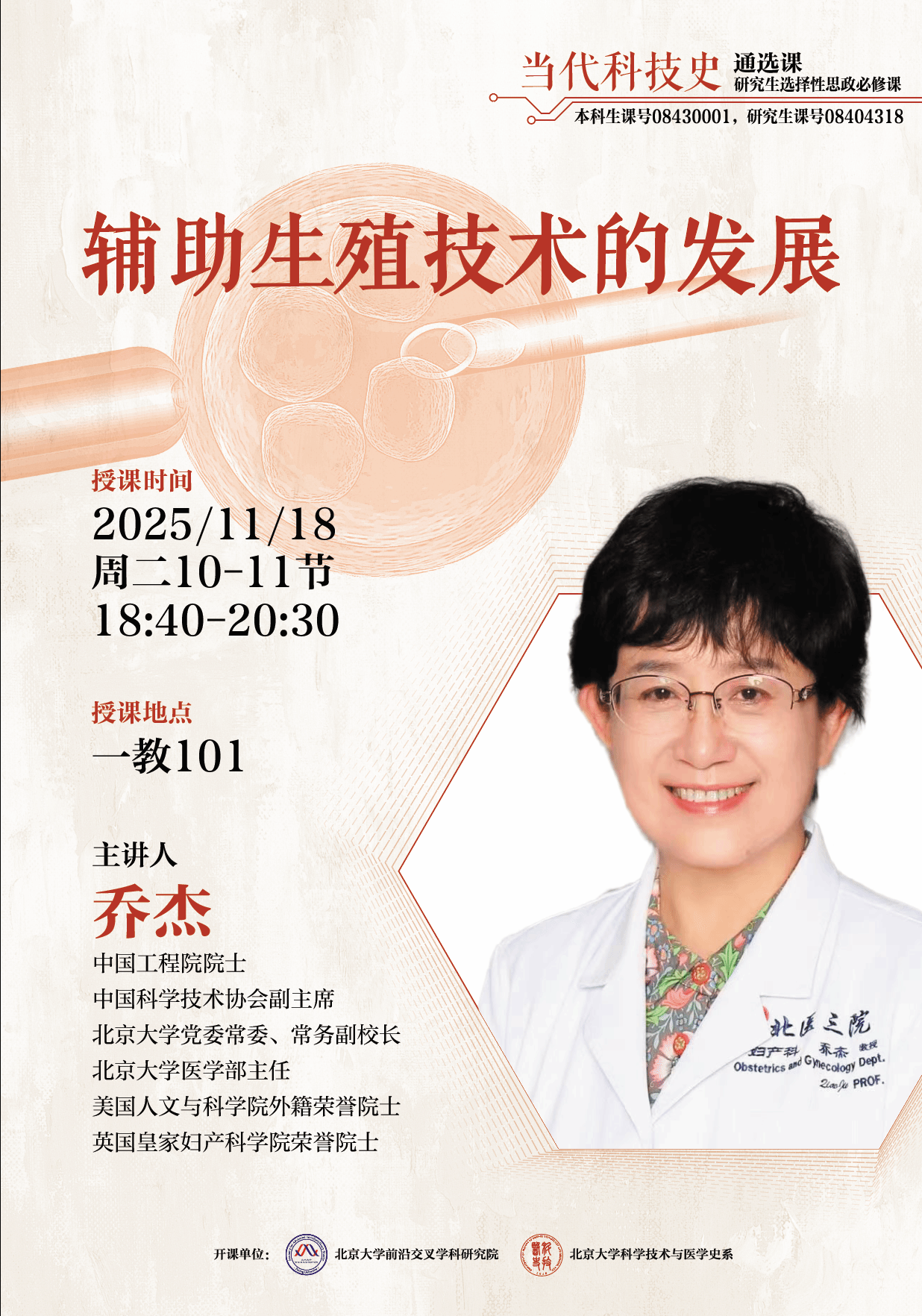 从世界第一例试管婴儿诞生至今,47年来,辅助生殖技术基于临床需求,整体技术得到了大幅提升、精进并得到广泛应用,目前全球范围内通过该技术出生的婴儿超过800万。那么,辅助生殖技术成功应用的背后经历了哪些探索?这些探索带给我们什么启示?辅助生殖的未来发展方向如何?乔杰院士将详细阐释上述问题,并由此展现辅助生殖科学技术史的魅力。