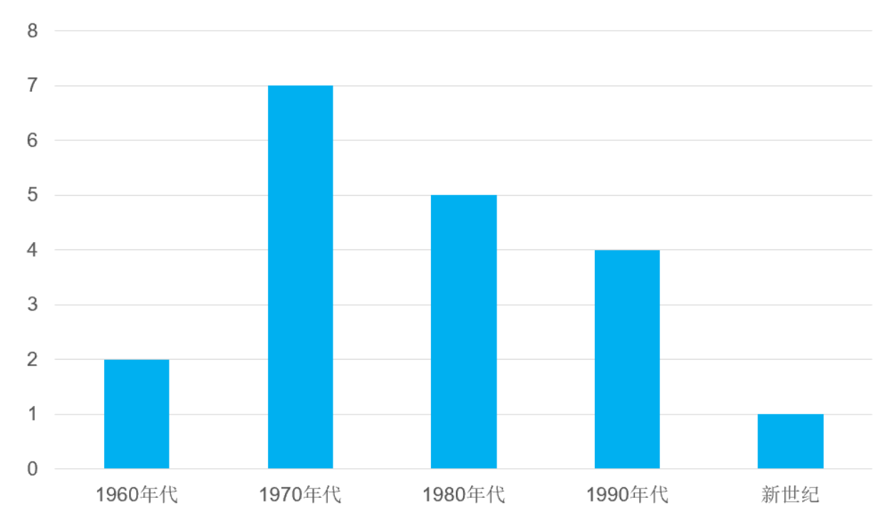 ▲诺奖成果的产生年代分布情况