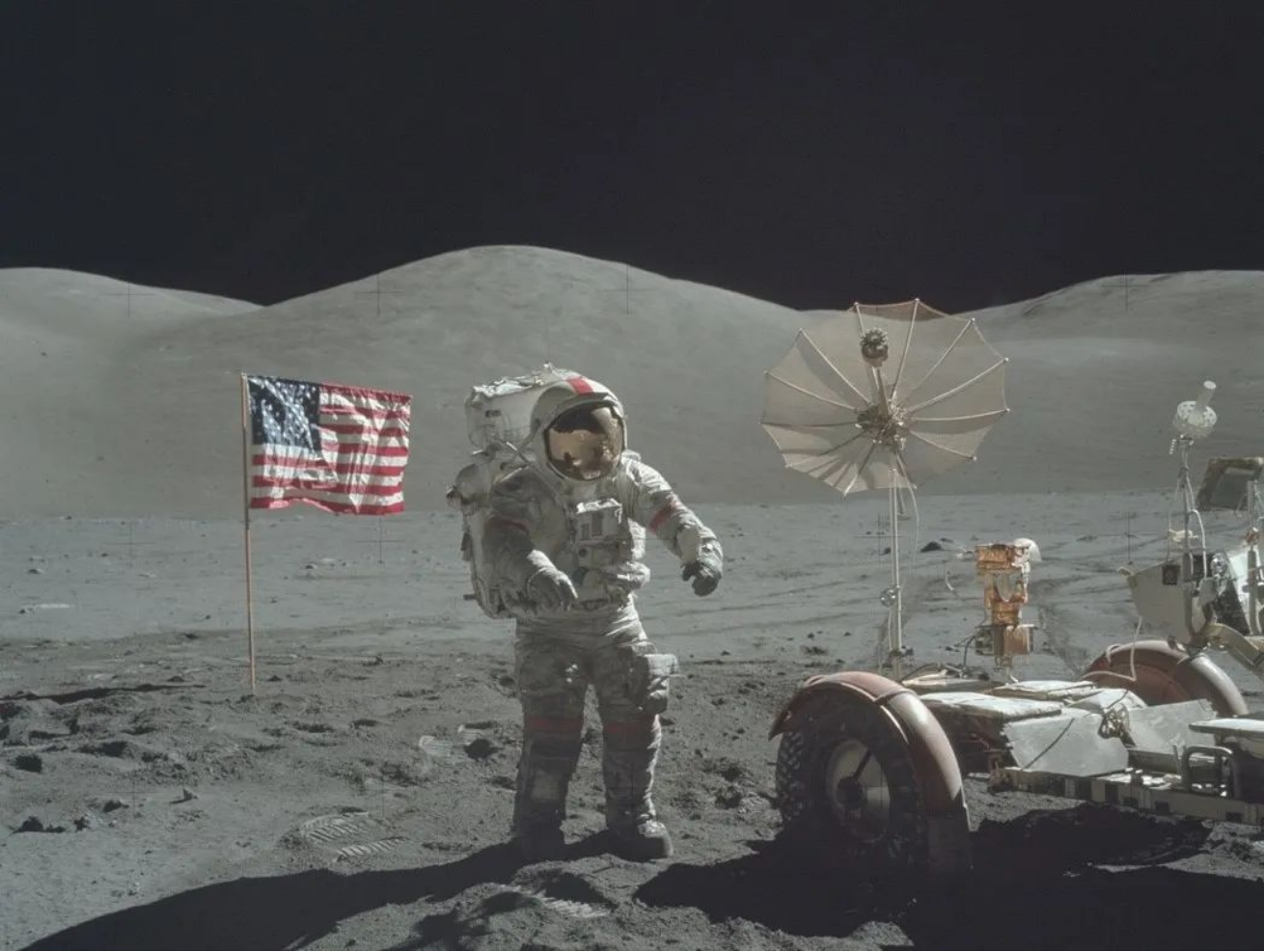 ▲美国宇航员乘阿波罗宇宙飞船成功登月
